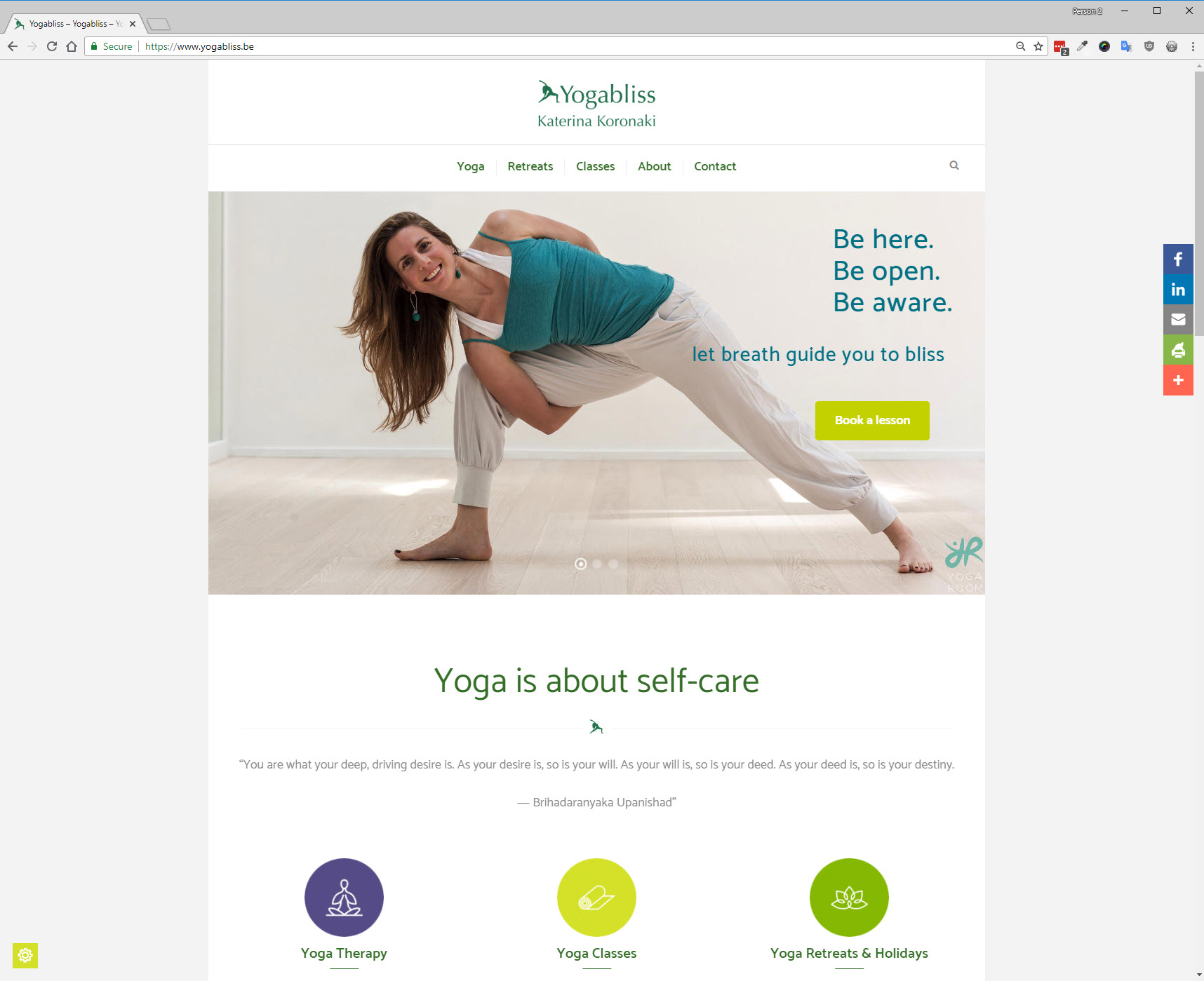 Outcome: Responsive multi-page online business presentation with animated slider, class & calendar integration and retreat presentation.